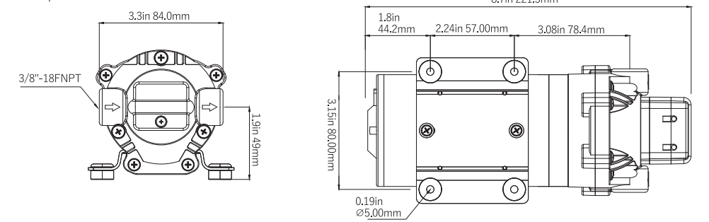 • Arbeitszyklus: Intermittierend (die Dauerbetriebszeit variiert je nach Druck)